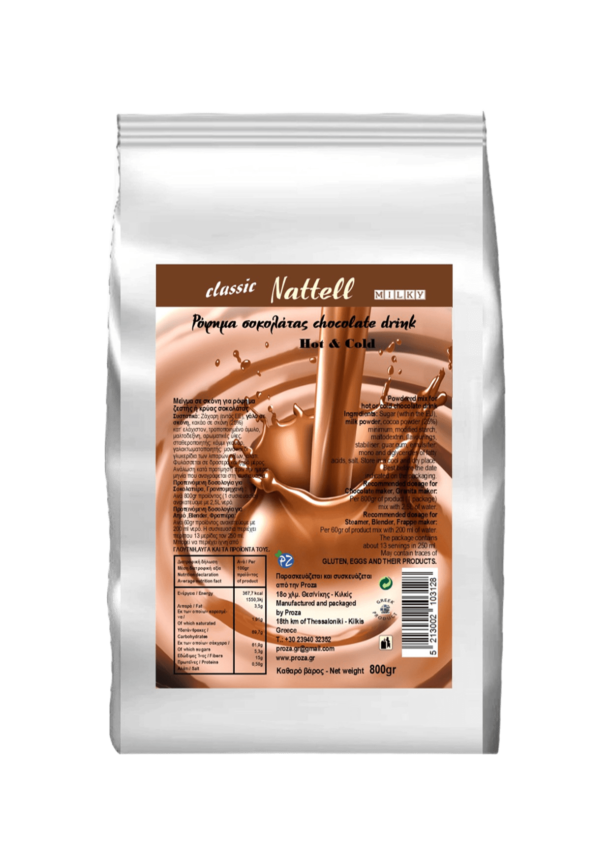 Ρόφημα σοκολάτας Nattell milky classic 800gr ΓΙΑ ΣΟΚΟΛΑΤΙΕΡΑ-ΓΡΑΝΙΤΟΜΗΧΑΝΗ
